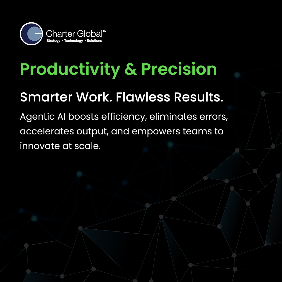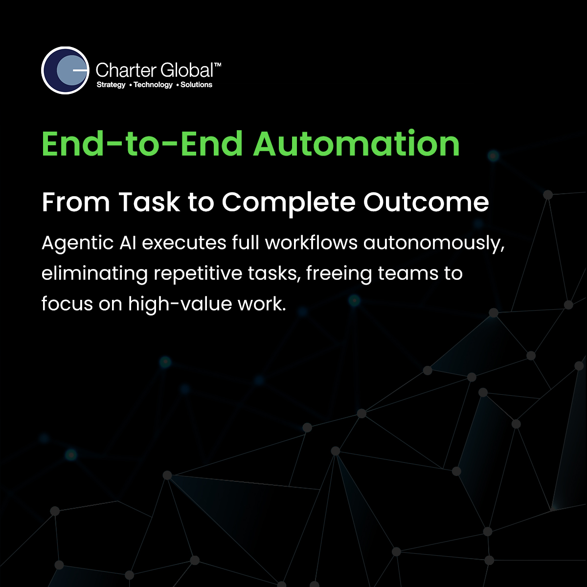 Whether you’re beginning your AI journey or ready to evolve your Generative AI capabilities into autonomous operations, Charter Global provides end-to-end support from strategic consultation to deployment and maintenance.
